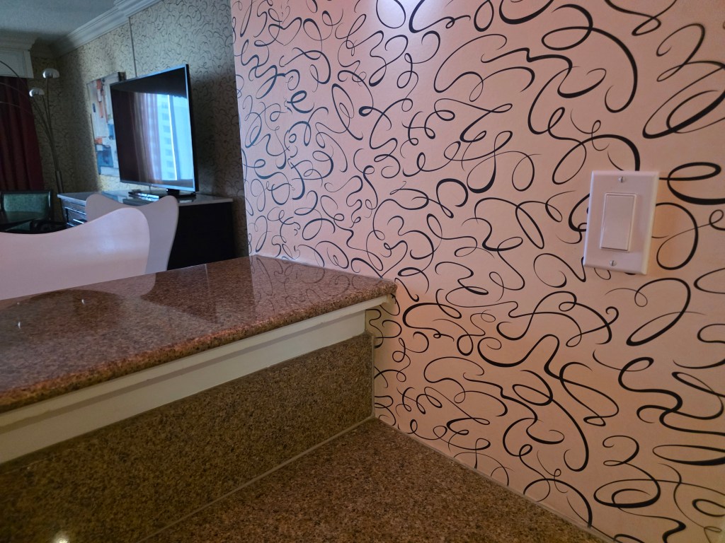 My wife booked the room so we could be close to a part of Las Vegas that we have not explored very much in the past. The room was a suite, so it had a living room and kitchenette, separate from the bedroom. The bed was comfortable, room service was good and the shower was hot. So far, so good.